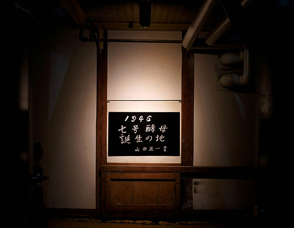 諏訪蔵の奥の一角には酵母を発見した山田正一博士の揮毫による「七号酵母誕生の地」のプレートが現存。