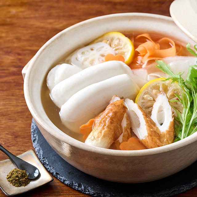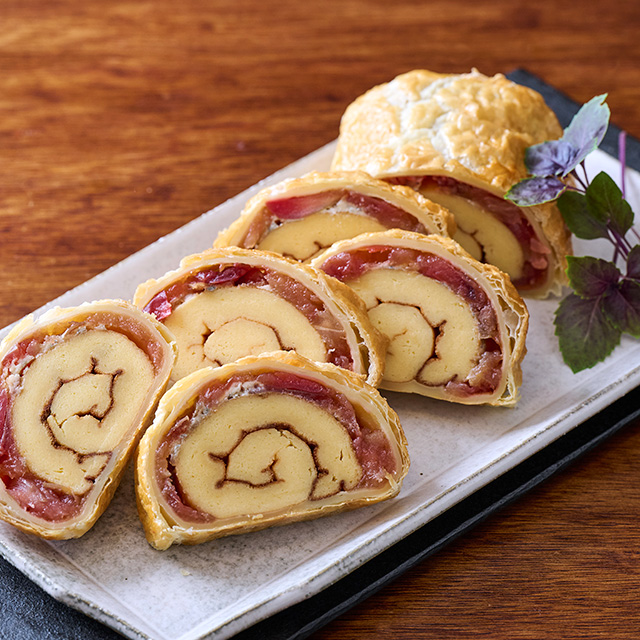 最高級の原料魚を厳選し、職人が石臼で丁寧に擂りあげたすり身に、新鮮な卵と砂糖、みりんを合わせ、一本一本ふっくらと焼き上げた伊達巻。ハレの食卓ではぜひ主役として楽しんでみてください。