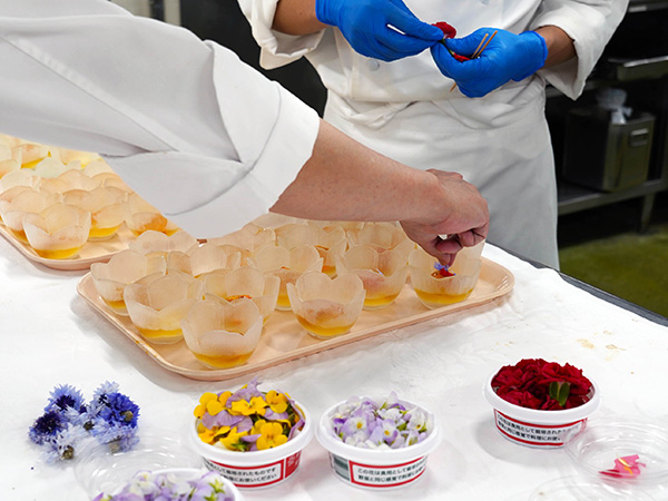 GEN-Bの交流会を通じて数多くの料理人やレストランと出会い、そのつながりから新しい挑戦も。たとえば、東京・渋谷の セルリアンタワー東急ホテル のレストランとのコラボレーションでは、これまでになかった“練りもの物フレンチ”を実現しました。その他にも『東京會舘』をはじめ、各地の有名レストランなどとタッグを組み、練り製品の新たな可能性を提案し続けています。