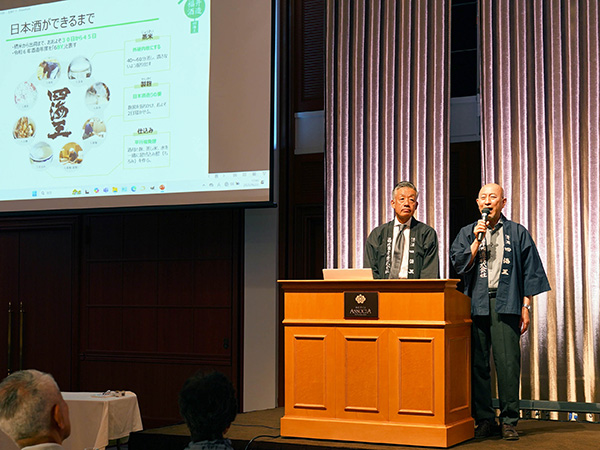 杜氏の王恒成氏も登壇し、精米から洗米、蒸し米、麹造り、三段仕込み、発酵に至るまでの工程を丁寧に説明。普段はなかなか知ることのできない日本酒造りの裏側に、参加者は熱心に耳を傾けました。