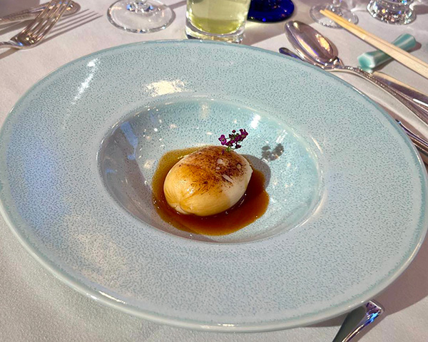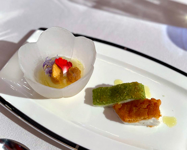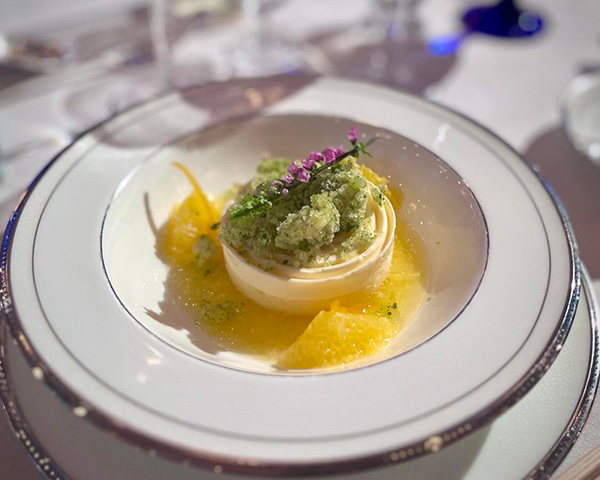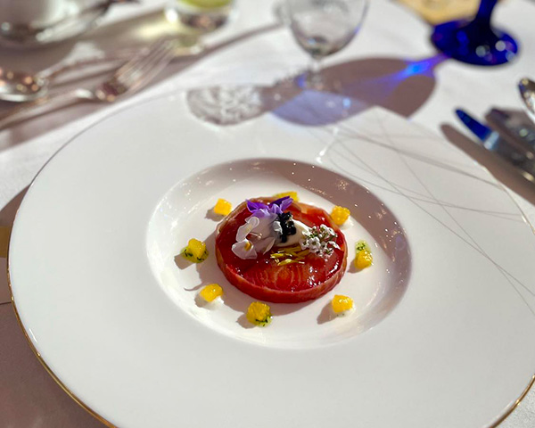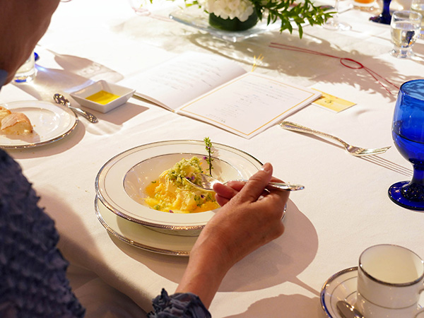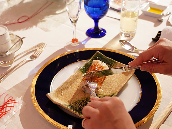 お待ちかねのディナーでは、三河の食材とヤマサちくわの練り製品を組み合わせた特別なフランス料理をご提供。いずれも地元の素材を活かし、伝統と革新が交わる一皿としてお楽しみいただきました。