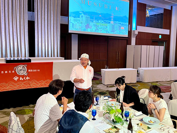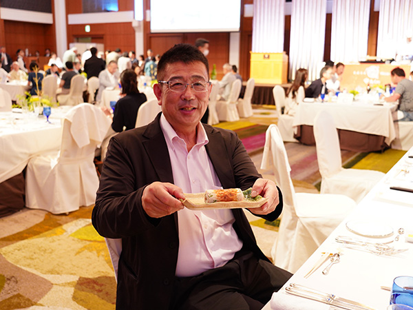 さらに佐藤社長は、地元小学校での食育活動についても紹介。3年生を対象に、子どもたちが自ら竹にすり身を巻き付け、炭火で焼き上げる体験を提供しているとのこと。「自分で作ったちくわを食べる子どもたちの笑顔が何よりの財産」とのお話に、大きな拍手が送られました。