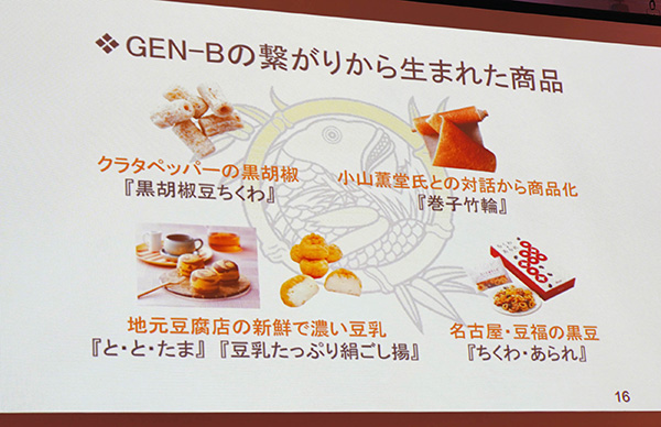 ヤマサちくわが創業200周年に向けて発足した『豊・食・人GEN-B』についてもご紹介。「豊橋の豊(ゆたかさ)、食の魅力、そして人の出会い」を結び、新たな価値と交流を生み出すことを目的に、各地の農水産物の生産者、企業との連携、料理人や専門家、クリエイターとのコラボレーションを通じて、豊橋・三河の食文化を次世代へと伝えていく取り組みを続けています。