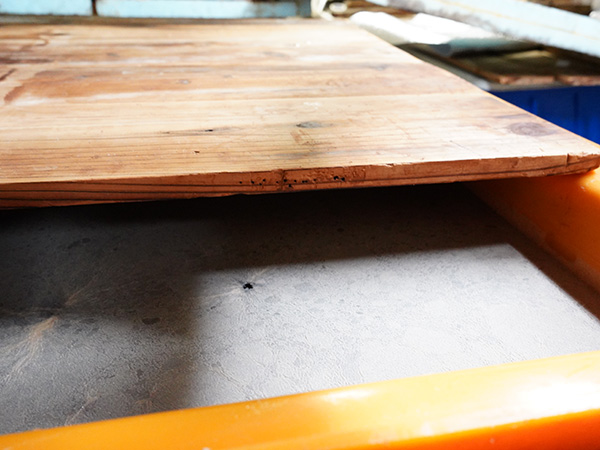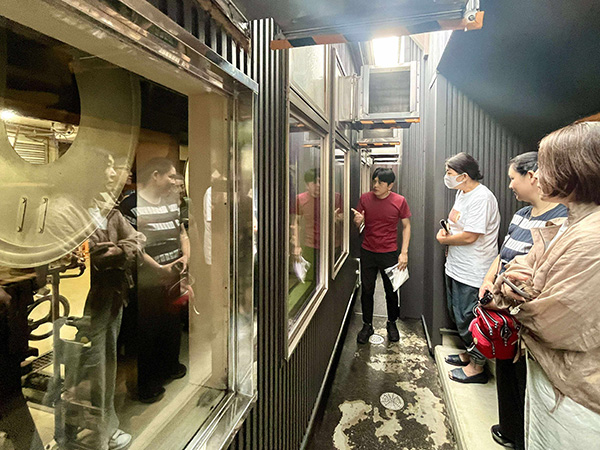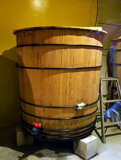 木桶熟成の現場も見学。ソースを木桶で!?そうなんです!香辛料を段階的に漬け込む独自製法は日本でも稀有で、木桶の微妙な凹凸によって接触面積が増え、熟成が進みやすくなるそうです。また、木にソースが染み込むことで味が安定するという性質も、トリイソースならではの深い味を支えています。