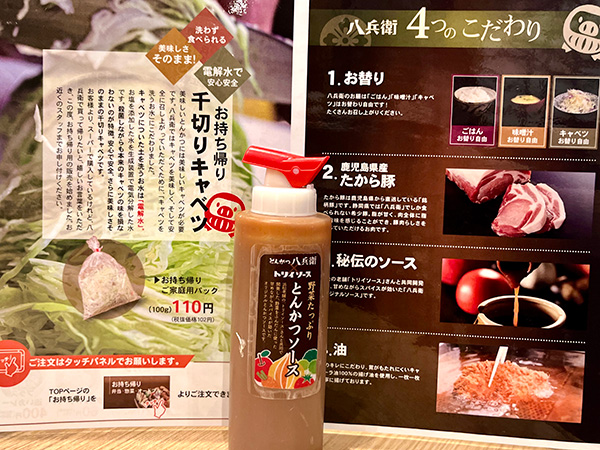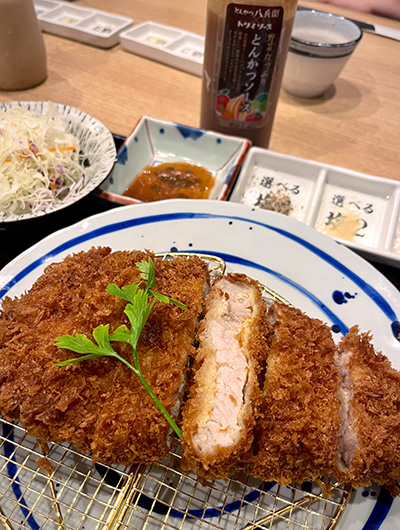 カラフルなラベルのソースやオリジナルグッズが充実した直営ショップでのお買い物を楽しんだ後、昼食はトリイソースとの共同開発によるオリジナルソースでいただける『とんかつ八兵衛 入野町店』へ。野菜の旨味が生きたフルーティーなソースは、重さを感じさせず、ボリュームたっぷりのとんかつもペロリと完食。ソースが美味しいので、おかわりキャベツまでしっかりいただいちゃいました。