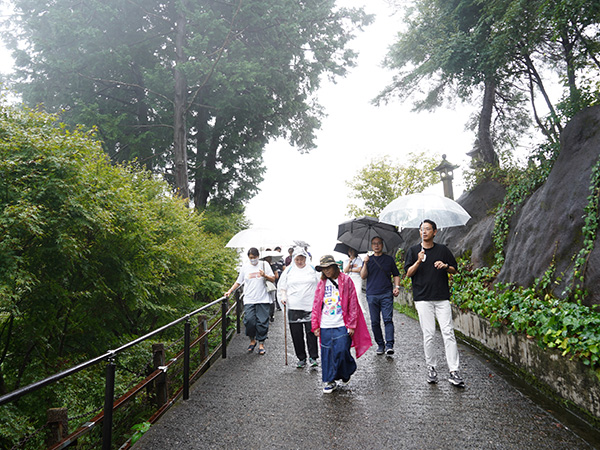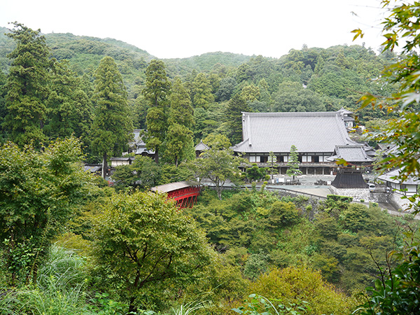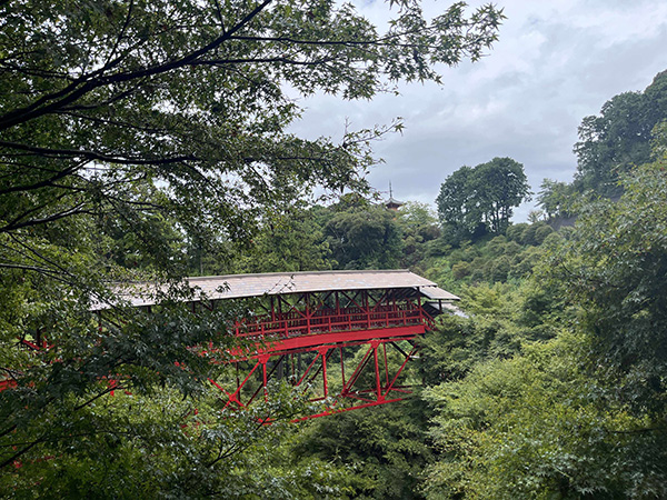 最初の目的地は、臨済宗方広寺派大本山「方広寺・奥山半僧坊」です。移動中は大降りの悪天候でしたが、到着すると奇跡的に雨が上がるという大幸運に恵まれました。緑の杉木立ちに浮かぶ赤い亀背橋(きはいきょう)からの水墨画のような眺めは、紅葉スポットとしても人気です。広大な境内には、本堂や開山堂に加え、全国でも珍しい「五百羅漢像」が点在。一体一体異なる表情や姿につい足が留まります。